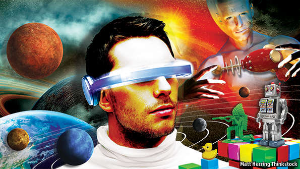 YOUR correspondent stands, in a pleasingly impossible way, in orbit. The Earth is spread out beneath. A turn of the head reveals the blackness of deep space behind and above. In front is a table full of toys and brightly coloured building blocks, all of which are resolutely refusing to float away—for, despite his being in orbit, gravity’s pull does not seem to have vanished.
